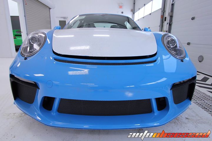 Auto Obsessed performed a New Vehicle Detail to this 2018 Porsche 911 GT3. The exterior underwent a full decontamination wash including iron and tar removal. The wheels, wheel wells, doorjambs, exhaust, and engine bay were extensively detailed with a host of OBSSSSD Premium Products. The paintwork underwent a light polish to correct any imperfections and improve the gloss before application of XPEL Ultimate paint protection film to the entire vehicle. We then finished the vehicle in CarPro CQuartz Finest Reserve Ceramic Coating.