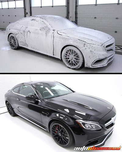 New car prep detail: 2018 Mercedes-Benz C63S with a wash, paint correction polishing, paint protection film installation, and a tough-but-beautiful layer of Cquartz Professional ceramic silica coating.